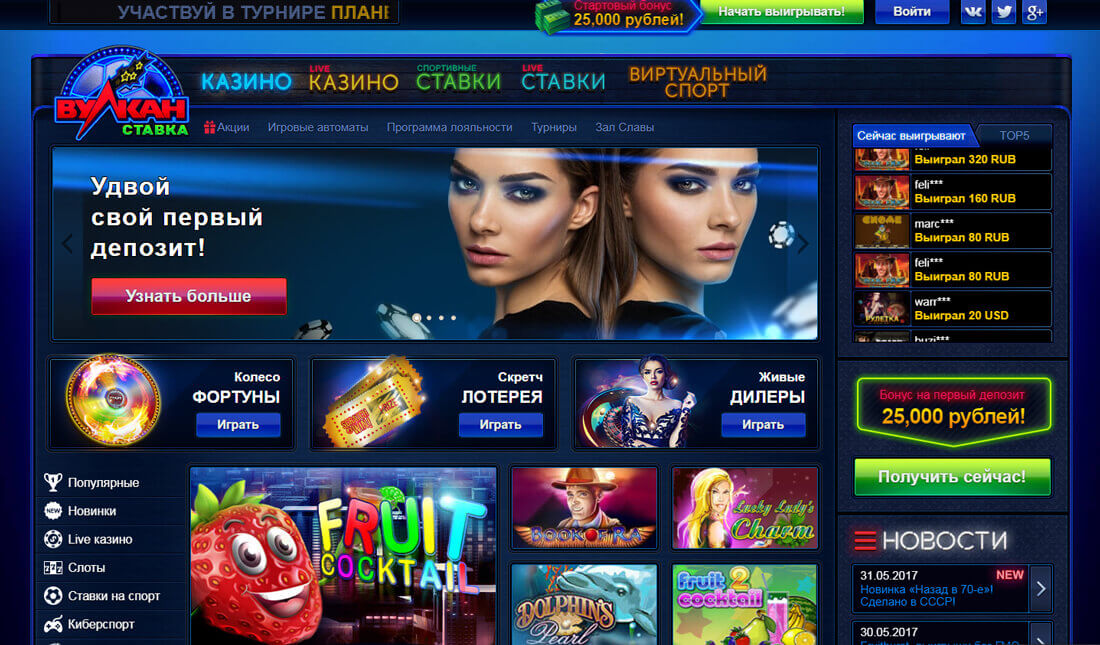 Портал русскоязычен, здесь нет других языков интерфейса. При посещении казино Вулкан Ставка вы легко освоитесь в навигации, сможете выбрать подходящие развлечения. Открыт доступ к таблице лидеров, которые выигрывают крупные сумы в текущий момент.