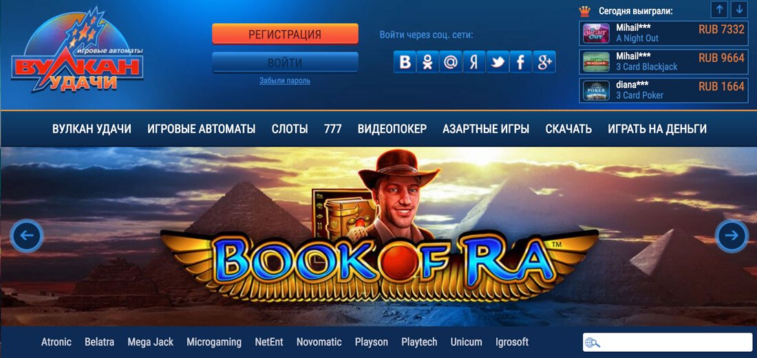 Официальный клуб Вулкан Удачи представляет лицензионный игровой софт таких производителей: